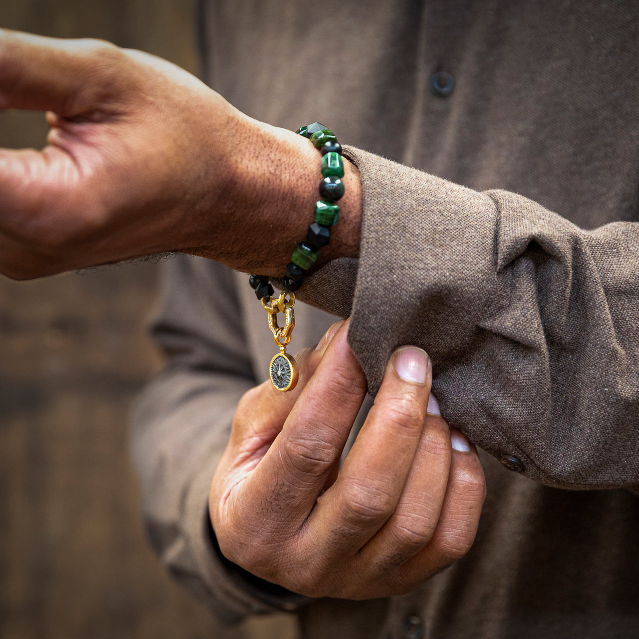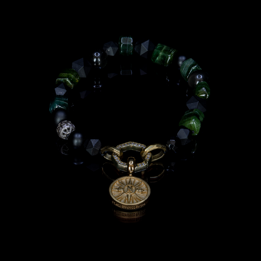 The Destination bracelet is a combination of specifically selected stones and crystals such as green Tourmaline which attracts luck, success, abundance and prosperity. It inspires creativity, and may be used to project, create and manifest one's goals. With both classy and street appeal it’s the perfect piece to accompany you on your journey to get where you want to be in life.